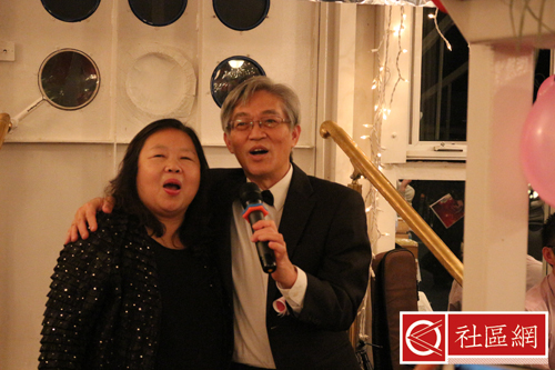 一边吃着美食,一边看着船外的风景,那情那景,许多人如梦幻一般,贪婪地享受着。待到游轮驶出港口之后,在水上游移时,船内庆祝活动正式开始。主办方Elsa Hsieh扼要介绍魅力传神之后,借此机会感谢为该次活动付出心血的人们。在协办方简单讲话之后,演唱开始。