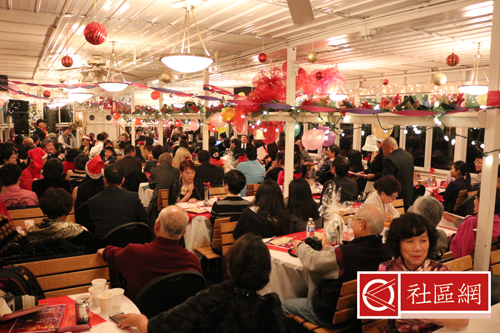 活动预定是下午4点开始登船,4:30启航。记者带着女儿坐地铁而下,到达停船港口处时,才发现误过好友Raymond洪的信息。他问记者到达哪里了,而他自己已经在船上了。匆匆拍完一组照片,记者直接登船,进到里面一看,我的天,热气腾腾,也热闹非凡,看来宾客们已经早早到来,等候出发。