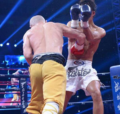 为了迎战日本空手道黑带武士小泉竜,武僧一龙也是艰苦备战,在一天半减重14斤(小记真不是他用的是什么魔法哦?)。武僧一龙以压倒性优势赢得了三回合的大战。首回合,黑带武士小泉竜凭借身高、腿法优势主动进攻,而武僧一龙则放弃主动进攻,采取防守反击的策略,双方首回合各有优势。