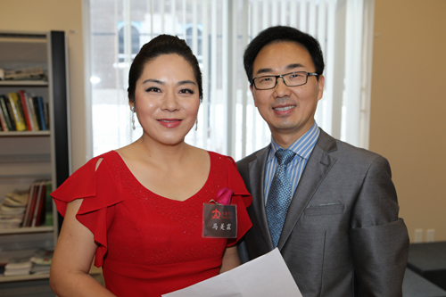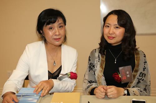 评委白水和多伦多中英诗人地产经纪张怡(右)