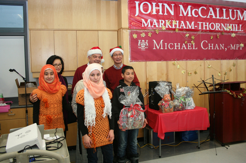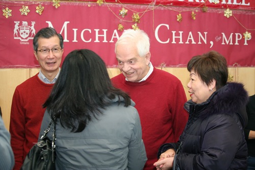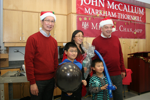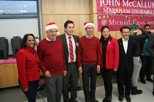12月17日万锦-于人村省议员陈国治(Michael Chan)和万锦-康山区国会议员麦家廉(John McCallum)联合举办了假日招待会和为食物库募捐活动。当地百多名各族裔的居民参加了这一次聚会,很多人带来专为万锦市食物库(Food Bank)准备的食物和捐款,在圣诞年终之际,向本地区的弱势群体提供爱心关怀。
