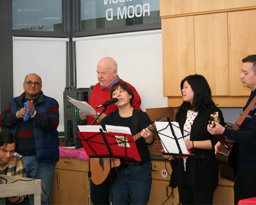 此次招待会,是陈国治和麦家廉第九次联手举办的节日招待会。除了庆祝圣诞佳节到来之外,也是接触民众、与选民互动的时候,很多人和两位议员合影留念。两人感谢当地居民的关注和支持,感谢大家对万锦食物库的爱心捐献。招待会安排了各种活动,有儿童娱乐、幸运抽奖等等,麦家廉夫人还拉起了一个乐队,在现场演奏演唱圣诞歌曲,由于她的带头,引得在场的众人以及万锦市议员杨琦清、前任议员Khalid Usman等一齐演唱,现场气氛十分热闹。麦家廉是华人的“女婿”。
