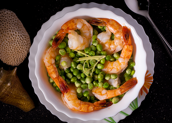 好吃又下饭的青豆蒸虎虾好了,沾点姜醋,也不错。