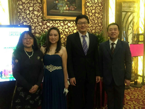 国会议员谭耕博士(右二)和加拿大湖南同乡会会长黄幸来博士(左)到场祝贺