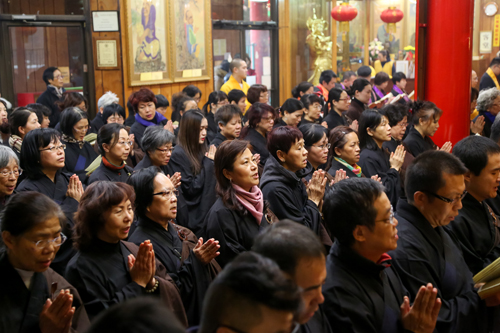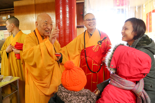 今天的湛山法物流通处格外繁忙。许多人也排队领取许愿带、许愿牌和菩提许愿叶,趁今天这个吉祥的日子,许下美好的愿望,希望得到佛菩萨的加持,来年吉祥如意。性空长老和达义大和尚叮嘱大家,要铭记佛恩,依教修持,如法修行,等於无上供养。在这一天念佛、诵经、持咒,犹为殊胜,具有大功德。