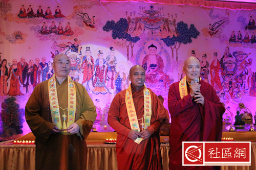 多伦多地区高僧大德,南传佛教等寺院、各级政府官员、华裔社团领袖和活跃在大多地区政治、商业、文化、艺术、教育等领域的善男善女以及媒体代表多人到场。在新年贺词中,主持照续大和尚说,“2016年已经过去,2017年是一个新的转折点,我们中华寺即将起建中华国际佛学院,一所现代化的都市佛学院,集佛教、文化、艺术、禅修等为一体,从培养少儿学佛,学中国文化,设立青年、中年佛学专业,至老年专念修行的综合性佛学基地。佛学院不局限于只对学僧的培养,会广开方便之门,吸纳所有致力于佛教学习和研究的信众。”