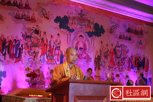在现场播放的视频中,大家有机会了解照续大和尚过去所走过的路(更多详情可查阅本网专访http://www.chinesecanadianvoice.ca/73819/)。照续大和尚为大家介绍自己的未来计划,当然筹建中华国际佛学院就是其最大发心。多伦多极光乐队(Apolar Music)在现场为大家奉上欢快的节日乐曲和经典禅乐。现场义卖和珍藏的佛宝拍卖活动高潮迭起,所有善款将用做“中华国际佛学院”的启动。健康生活从吃得健康开始,当天的素餐也十分丰富,味道精美。
