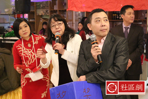 待主要嘉宾到达之后,大型联欢活动正式开始。活动四位主持全是理事会骨干,俊男靓女借用春节祝福语开启,祝愿大家在朝气蓬勃的鸡年一帆风顺,二马腾飞,三羊开泰,四季平安,五福临门,六六大顺,七星高照,八方来财,九九同心,十全十美。而当晚活动在食全食美餐厅,与十全十美同音,真正开了吉祥鸡年万事如意的好彩头!