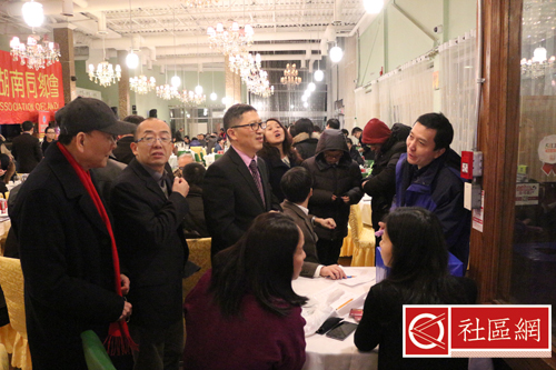 差不多6:30,各位嘉宾也逐一赶来。主要嘉宾有中国驻多伦多总领事馆侨务领事杨葆华和宋晨亮领事,姗姗来迟的万锦市议员杨绮清,加拿大同乡总会暨湖北同乡会会长杨申及10多个兄弟省份同乡会会长,以及冠名赞助商瑞邦国际所派出的代表等。在活动正式开启之前,加拿大湖南同乡会会长黄幸来接受媒体访问时表示,“每年一度的大型迎春晚会主要是吸引众多湖南老乡的参与,让大家有机会相互认识和交流,同时也让大家相聚一场,享有湖南特色的文艺表演。”