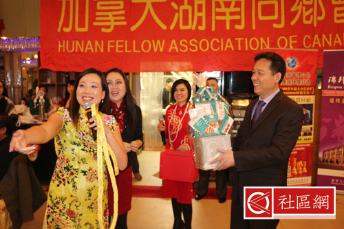 黄会长特别指出,今年是加拿大政府法定认可春节作为节日的第一年,这个议案就是来自湖南的国会议员谭耕博士所发起并通过的。谭耕博士原本计划参加该次活动,与大家联欢,但分身无术,在活动前一天早上赶乘早上7点的飞机,前往斐济,参加亚太议会论坛。在临行前,特意嘱咐,一定要将他的问候带给现场的所有朋友:在农历鸡年到来之际,感谢嘉宾、赞助商、媒体朋友和所有老乡的到来,祝福大家鸡年吉祥,万事如意。