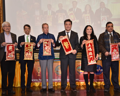出席晚宴的贵宾包括中华人民共和国驻多伦多总领事馆领事叶祎、刘圆圆,香港经济贸易办事处代表Hilda Chow,国会议员Arnold Chan,Shaun Chen,Majid Jowhari, Deepak Obhari和Jenny Kwan,以及省议员Han Dong和Lorne Cole,多伦多市议员Jim Karygiannis,Chin Lee,密市议员Ron Starr,万锦市议员Joe Li,Nirmala Armstrong,Alex Chiu,Alan Ho,Amanda Collucci,以及列治文山议员Godwin Chan,Castro Liu,克来尔顿地区议员Willie Woo ,约克教委Carol Chan及约克区警察总长Eric Jolliffe,约克区警政委员会委员江邦固,加中投资协会会长孙晓明,多伦多华联会主席林性勇,密西沙加华商会会长严雯,潮州会馆会长林财丰等。约三十个中文媒体负责人也参加了本次盛会。席间,No BOundary乐队助兴演出,God of Fortune财神派红包,及主题演出“政要达人秀”有约克区教委Carol Chan及万锦市区域议员Nirmala Armstrong。Nirmala更用中文演唱邓丽君名曲《甜蜜蜜》。晚会赞助商包括加拿大Bell公司,风水大师Paul Ng和律师Scott Au等。与会嘉宾有机会参与了各种幸运抽奖,其中包括两份五百的现金奖,两台42寸的彩电以及Lamborghini手表等。