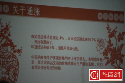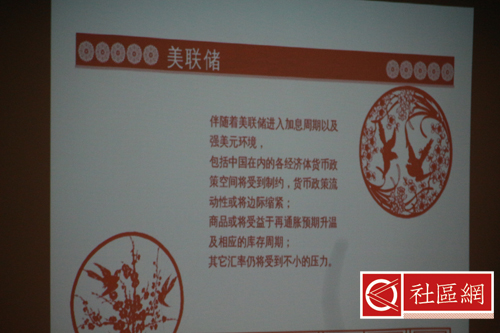 作为外行人,记者不想就当晚讲座内容做点评。假若读者感兴趣的话,那您就去从那一张张PPT去解读吧!需要强调一点的是,正如叶先生所言,投资是一门艺术,需要学习,学习,再学习。而当晚的讲座内容给记者的启示是,在学习过程,世界的宏观认识应该放在很高的位置。
