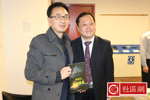 Bill Ye给记者赠送自己的专著《神秘的对冲基金》