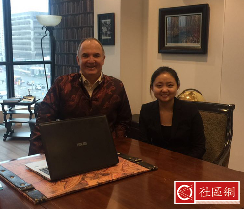 Angela展示她工作公司办公室的照片,她说:“平时里感觉自己仿佛置身于了一个投资精英的工作环境中”。细细观察照片中周围墙上的照片,我发现Angela和Stephen见过很多知名的人物。问起她在会见这些名人里感觉最受启发的谁?Angela说:“是当今加拿大某知名投资银行的副主席。因为他是多大地质系毕业,算是自己的学长,在和他一起吃饭的时候,他的一句话很打动自己,就是'做一个理财顾问最需要坚信的就是要设身处地的让每一个对投资感兴趣的朋友选择最适合他们的投资。” Angela说:“只有为别人着想才能建立彼此的双赢。”