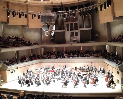 第三曲是陈齐刚所作的《万年欢》,他以中国的昆曲为源泉,将西洋乐器与中国传统曲目相结合,在乐团低沉静谧的合音中引出著名的加拿大女小号演奏家Alison Balsom。小号悠扬而深远加上紧密的鼓点,整个大厅雅雀无声,仿佛演奏的音符汇成一股力量冲出了厅宇扩散到宇宙当中,凝成序曲中的哀婉的片段。环视大厅观众凝神注目,前排一位观众双手合十,沉浸在音乐的享受当中。乐队成员几乎都是清一色的白人演奏家,他们居然将中国曲目演奏得如此精湛。指挥余隆抑扬顿挫,一手舞动指挥棒,另一只手在空中打着节拍,仿佛在轻轻在抚动空中的琴弦。渐渐地小号变得嘹亮起来,配着其他西方乐器而变得不再孤单。它像金鸡一般跃然于高岗,连续的的音符在重续中不断地升华到宇宙中,逐渐扩散和弥漫最后消融。忽而这小号又来到大地,像吹拂田野的春风,和煦而来,你能够感觉到处处花朵开放,布谷鸟在空中飞翔,杨柳在风中快乐地舞动,天空绽开了阳光… …群情为之振奋,乐手为之欢腾,指挥释放出激情。雷声轰鸣,辉煌跃然而上,十多分钟的演奏让人心神荡漾,演奏家曲终散尽,观众依然掌声不断。