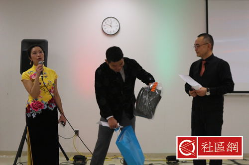 联谊会主席胡真讲话,在扼要回顾WCCA所走过的15年历史中,从创办到现在一直得到三级政要与许多赞助商的支持,对此她代表联谊会表示深深的谢意。作为新春元宵联欢会,其实也是感谢政要与赞助商,希望大家能够度过一个愉快的下午。在进入下一个环节之前,中间有一个小插曲,那就是给主持人陈君言,滑铁卢地区第一名华裔警察,一个惊喜,即日成为WCCA给他荣誉理事,并送给他一份带有协会Logo的特殊T恤。