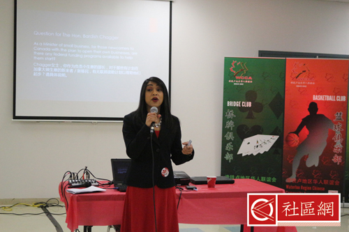 给联邦小生意和旅游部长Bardish Chagger的问题是,对于有计划在加拿大做生意的新移民,联邦政府油污资助计划?Bardish Chagger高兴地回答,对于新移民创业,联邦政府有一系列资助措施,大家可以上网查询。Bardish Chagger特意拿出一大把名片,欢迎有兴趣的人拿取。她强调说,中小企业是加拿大的经济命脉,政府鼓励创业,更愿意帮助新移民创业。对于滑铁卢地区警长Brian Larkin,主办方给出的问题当然是与社区安全相关,以及最近引发热议的芬太尼危机。警长表示,与其他城市相比,滑铁卢地区治安居于上游。他认为,社会治安并不仅仅由警局决定,更在于三级政府的配合以及社会团体,类似WCCA的参与,他盛赞WCCA在过去所做的工作,也希望在未来有更多的合作。
