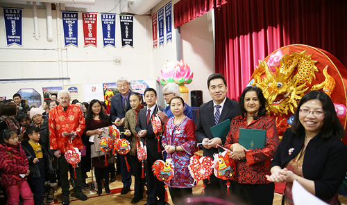 傍晚6点10分,中国驻多伦多总领馆领事刘江波,加拿大联邦国会议员Salma Zahid、陈圣源、陈家诺,士嘉堡市议员李振光,加拿大江苏国际商会会长沈浩,加拿大华人同乡会联合总会共同主席朱江,独家冠名赞助RBC皇家银行代表、赞助灯会项目发言人汤珊,场地赞助代表、邦德多伦多国际学院校长Jeffrey Farber,以及多伦多秦淮灯会组委会首席代表戈进博士兼代表主办机构安大略-江苏友好协会会长李宁玉博士,齐聚室外四座秦淮大型灯组前,按下花灯簇拥的亮灯键,点睛唤醒金银双狮,为2017丁酉鸡年多伦多秦淮灯会点亮室外灯彩,和来自大多伦多地区以及周边城市的2000多名与会朋友一起同庆丁酉鸡年元宵佳节!