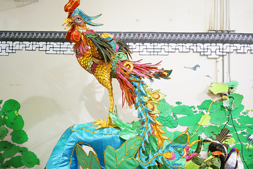 金鸡报喜、锣鼓震天、双狮欢跳、同庆佳节,在4只大小“金鸡”的引领下,与会朋友们跟随着喜庆的锣鼓与双狮从灯会室外会场走进室内会场。门厅、走廊、多功能会场,一路高挂着数百盏非物质文化遗产传承人手工制作的秦淮花灯。荷花、兔子、蜻蜓、螃蟹、飞机等各式花灯与上百盏大红灯笼争奇斗艳、迎宾纳客!
