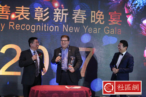 回顾2016年,Gary总结总商会在五个方面取得骄人承接。其一,拓展与国内外政界工商界伙伴合作关系;其二,增进与兄弟商会沟通互动;其三,增强平台服务功能,提升品质;其四,提升自己的号召力、亲和力、凝聚力和影响力;和其五,构建让会员骄傲,让公众信赖,让同行尊重,让社会瞩目的良好品牌。为此,总商会在今晚特意表彰一批在地产、金融、法律和理财等行业取得成绩的专业人士,鼓励他们在未来更加辉煌。