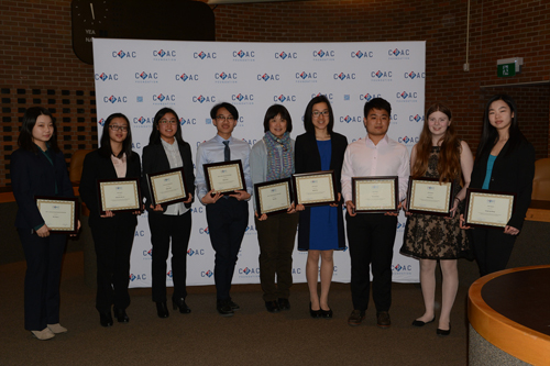 获得CPAC高中奖学金者的六名学子都是成绩优异,同时积极参与社区活动并体现出领导才能的高中生。获得10年级组别奖学金的三位同学是:就读于The Woodlands School的Sunny,Song Ling Wang。Sunny在加拿大发展最快的青年领袖商业组织FUSE Society担任执行总裁,已筹集了超过$18,000资金,接触到来自全国各地的6,000多名学生,鼓励他们能够更积极地参与社区活动并成为未来的商业领袖。作为国家执行委员会中最年轻的成员,Sunny一直致力于创新发展,并在2016年SHAD-John Dobson创业杯上获最高奖。另一位是Don Mills Collegiate Institute的Elaine Ke-Xin Liu。Elaine一直热衷服务社区并努力追求卓越,自2013年以来Elaine一直是圣约翰救护车的积极志愿者和青年领袖,并被选为16个青年成员之一,参加了2016年香港国际学员营急救比赛。还有一位是Hammarskjold High School的Emily Cross。在过去的9年里Emily赢得了30多个地区、国家和国际科学奖项,包括2015年在英国国际科学与工程博览会上获得The American Geoscience Institute First Special Award,以及2016年西格玛学会高中地球科学奖,加拿大科学展的金奖等。Emily还创建了“Be the Difference, Make a Difference”,为柬埔寨的孤儿院筹款。