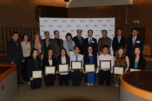 获得12年级奖学金的是Victoria Park Collegiate Institute的Kevin Zhang与Bayview Secondary School的Mokai Xu。Kevin在上学年IB课程获97分高分,并积极参与志愿者活动,义工时间累计超过1,000小时,他参加Overcome the Gap、一个帮助消除教育障碍的公益组织并组织了多场领导力培训会议,帮助培养更多的未来领袖。Monica则是2016年度安省满分状元之一,现在滑铁卢大学和Wilfrid Laurier大学攻读计算机科学与工商管理双学位,她曾任万锦市长青年理事会共同主席,并担任加拿大工贸团访华的代表之一。