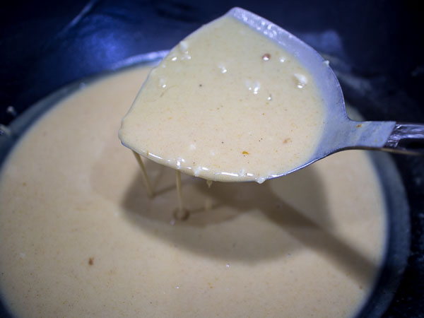 在一个大锅中下青柠汁,椰奶,葡萄酒,咖喱酱,大蒜,鱼露和糖。 搅拌溶解糖和咖喱酱,大火煮沸2分钟后,加入贻贝加盖煮熟,偶尔搅拌,直到贻贝张口,5到8分钟。