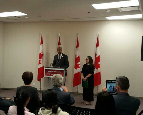6月5日,联邦移民部长Ahmed Hussen前往Centre for Immigrant and Community Services(简称CICS)的Markham South Welcome Centre举办特别新闻发布会,介绍有关Express Entry(移民快速通道)政策的相关变动。
