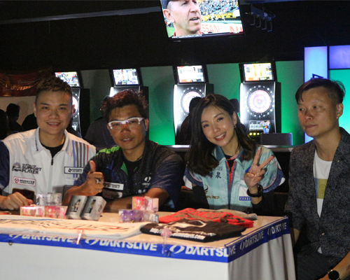 Tom的介绍真是及时雨,让大家受益匪浅。大家学习的同时,记者见面会已经准备就绪,大家移步过去,嘉宾已经坐定。出席这次媒体见面会的嘉宾除远道而来的香港镖侠林鼎智和梁雨恩之外,加拿大职业镖手Desmond Chin和iDarts总裁Steven Fan也在现场坐定。总裁Steven简单介绍之后,三位选手都有介绍,只可惜他们介绍以粤语为主,记者基本上没有听懂!不过,应记者要求,提问过程倒是满足了心愿,他们尽可能用国语回答。