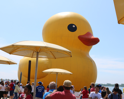 大黄鸭来多伦多,差一点在安省引发成政治风波!反对党说执政党浪费纳税人的银子,引进与加拿大无关的大黄鸭,来庆祝加拿大建国,也是安省建省150周年!在大黄鸭到来的那一天,也就是Canada Day(国庆)的前一天,主办方特意邀请安省进步保守党党领Patrick Brown近距离观看大黄鸭,不知道是否堵住了他的嘴,还是什么,没有听到他的相关言论!