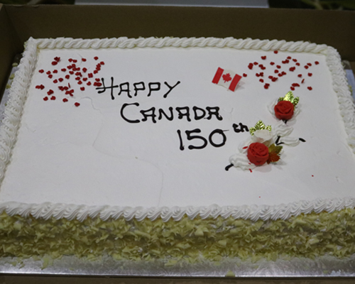 究竟这是派对,办公室为大家准备了丰富的加拿大食物–来自Tim Hortons的咖啡和食品。当然艳丽的加拿大国旗和150周年庆典的小旗子大家可以自我装扮。无论是办公室工作人员,还是参与该次活动的义工们,大家热情地服务现场的每一位宾客,无不有宾至如归之感。这是谭耕成为联邦国会议员以来举办的第二次Canada Day活动!估计许多选民都会深刻地体会到他不忘初心,尽心尽责为选民服务。
