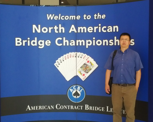 滑铁卢地区华人联谊会(WCCA)桥牌俱乐部四名队员(宋江洪、鞠英年、刘忠九和陈通)联合两位多伦多地区的桥牌好手杨力章和Ron Baecker,经过五天的激烈争夺,获得北美桥牌团体锦标赛(Grant National Teams,简称GNT)C级亚军。2017年北美夏季桥牌大赛7月20日-30日在安大略省多伦多进行,前一次在多伦多举办的北美夏季桥牌大赛已经是在6年前,也就是2011年。本次比赛在多伦多的地标建筑–CN Tower下的大多伦多会展中心举行。