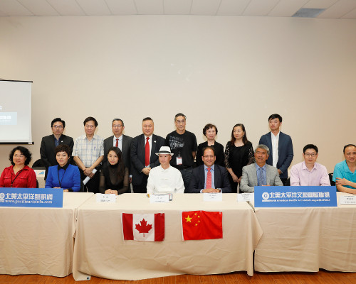 新闻发布会过程中,北美太平洋文艺国际联盟与中加艺术科技联盟(Canada China Art-Tech,简称CCAT,蒙特利尔中加国际电影节(Canada China International Film Festival,简称CCIFF)之商业主管公司),就中加国际电影节之剧本评审项目签署的影视文化合作协议举行了文本交换仪式。同时,北美太平洋文艺国际联盟与加拿大乒乓球协会也举行了项目合作签字仪式。