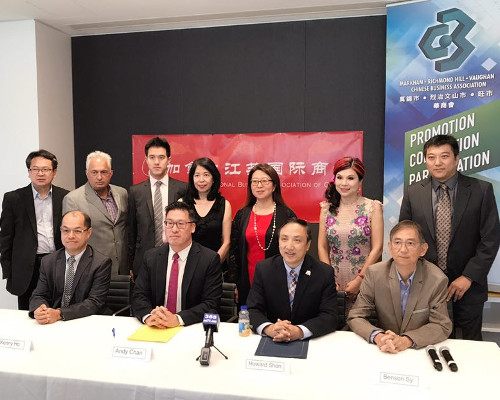 加拿大江苏省国际商会(Jiangsu International Business Association of Canada,JSIBAC)与万锦市烈治文山市旺市华商会(Markham, Richmond Hill & Vaughan Chinese Business Association,MRVCBA)定于9月5日在Station Creek Golf Club, North Course联合举行2017慈善高尔夫球赛。为此,两家商会8月9日上午11点在Miller Thomson律师事务所旺市办公室所举行了新闻发布会。