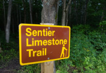 从Brent小镇返回营地,时间尚早,我建议再走走。我们穿过营地附近的小沙滩,见到一个Trail的入口,我们就从那里进入。当时看到Trail的名字叫做Sentier Limestone Trail,笔者...