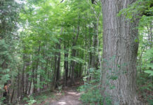 通过一座小桥进入Greenwood自然保护区之后,路旁开始有不同长度与难度的Trail可以进入。笔者原本去第一个Trail,在路的右手边,名字叫做Recreation Trail,不过女儿却选择了左手...