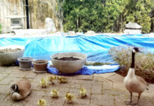 好开心!5月8号,在母亲节的前一天,飞来我家后花园生蛋的鹅妈妈经过千辛万苦,日晒雨淋,终于孵出了她的7个漂亮宝宝。