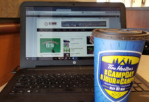 早上,笔者一路杀到老据点,也就是靠近高速401,但处于居地和多伦多中间地段的一家Tim Hortons。由于光临这家Tim Hortons上百次,从经理到员工都知道我是常客。