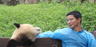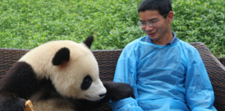 大熊猫二毛一家在卡尔加里动物园很幸福